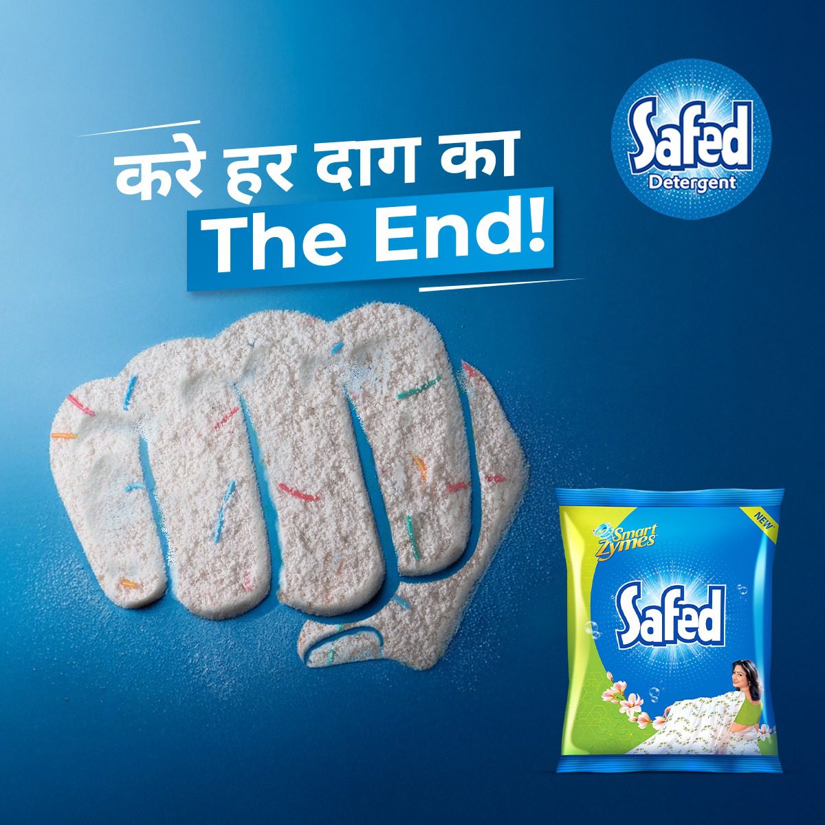 - Safed detergent powder with its next-generation Smartzymes Technology, provides Smart Care & Enduring Freshness for your clothes. It is now formulated with a unique blend of detergent, enzymes & other actives that help remove complex stains quickly.